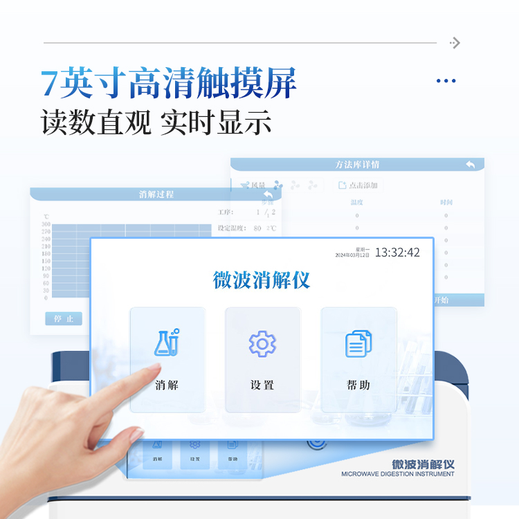 简要描述: 微波多功能消解仪是一种用于样品前处理的设备,通过微波加热技术对样品进行快速、有效的消解。该仪器广泛应用于食品、环境保护、疾病控制、质量监督、商品检验、科研院所等领域,特别适用于各种样品的酸消解和溶剂萃取。